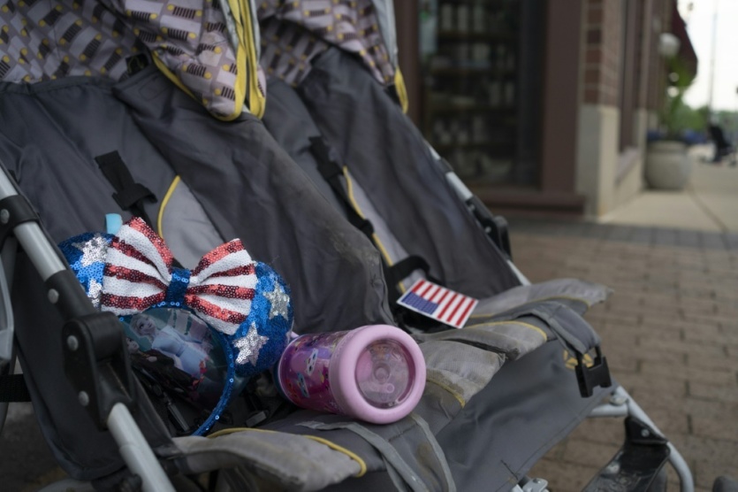 Une poussette abandonnée après la fusillade à Highland Park, dans l'Illinois, le 4 juillet 2022 Youngrae Kim [AFP]
