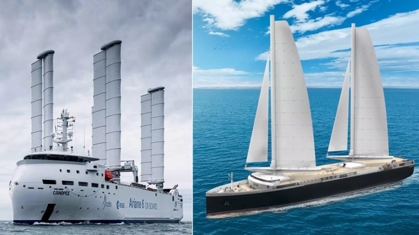 Le navire Canopée de l’armateur Zéphyr et Borée transporte ,lui, différents morceaux du lanceur Ariane 6 entre l’Europe et Kourou, en Guyane. Il est partiellement propulsé par le vent, ce qui génère une réduction de 30 % de ses émissions de gaz à effet de serre. Zéphyr et Borée prévoit de construire un porte-conteneurs doté d’ailes rigides qui permettraient de réduire de moitié les émissions de gaz à effet de serre.