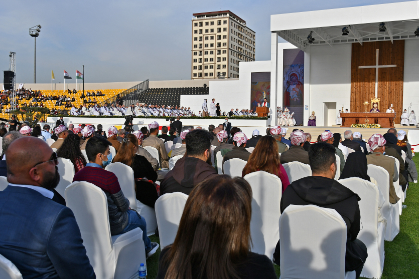 - Le pape François a conclu sa visite historique en Irak, dimanche, avec une messe devant des milliers de fidèles dans le nord du pays ravagé par les jihadistes, appelant les chrétiens encore dans le pays à " ne pas se décourager ".Après avoir prié pour les " victimes de la guerre " dans les décombres de Mossoul, ancienne " capitale " autoproclamée du groupe État islamique (EI), ou dans l'église tout juste restaurée d'une localité martyre de la plaine de Ninive, le souverain pontife a célébré la plus grandeIl vous reste 96% de l'article à découvrir.Cet article est réservé aux abonnés.