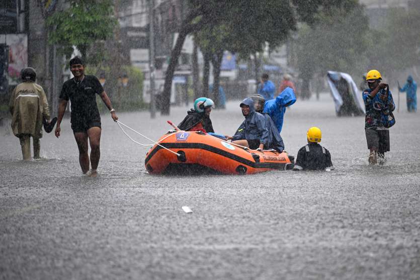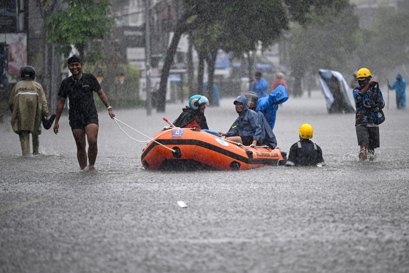 Dans le district de Badung, les eaux ont submergé des infrastructures telles que des cafés et une station-service, obligeant certains touristes à être évacués à bord de canots pneumatiques.
