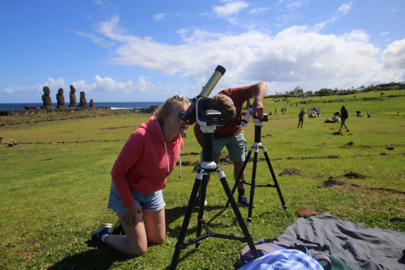 Sur l'île de Pâques, locaux et touristes se préparent à admirer une éclipse annulaire de soleil. AFP / JONATHAN MARTINS"Spécial au Sud"