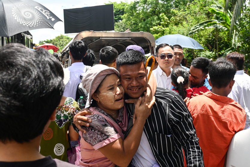- A.T. | Crée le 18.04.2025 à 09h42 | Mis à jour le 18.04.2025 à 09h42ImprimerRetrouvailles émouvantes entre des prisonniers graciés et leurs familles. Photo : AFP - Sai Aung MainLa junte militaire birmane a annoncé jeudi qu’elle allait libérer près de 5 000 prisonniers dans le cadre d’une amnistie à l’occasion du Nouvel an dans le pays.