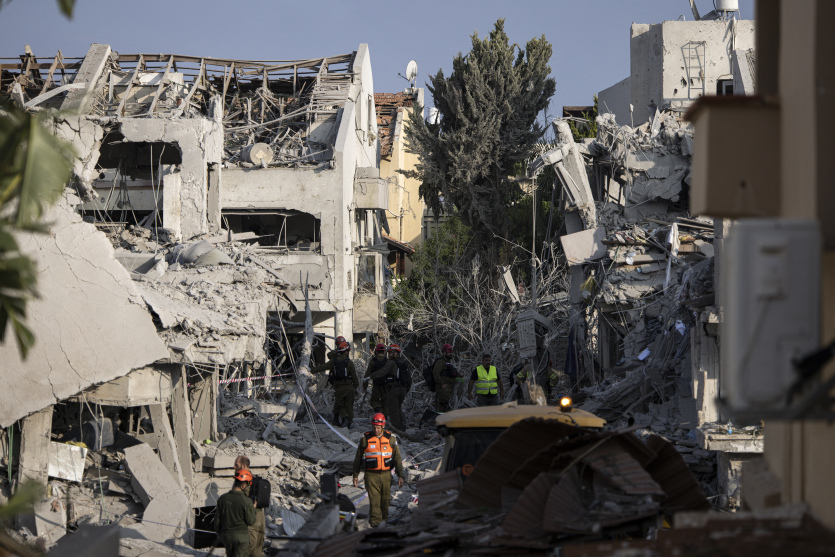 À Tel Aviv, les dégâts causés par des missiles iraniens samedi 14 juin. Photo AFP / John WesselsMERCI DE VOUS IDENTIFIER