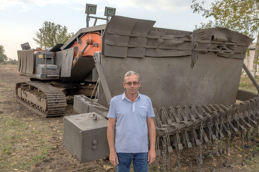 - Anna MALPAS / AFP | Crée le 20.11.2023 à 13h00 | Mis à jour le 20.11.2023 à 13h00ImprimerVitaliy, un ingénieur de Kryvyi Rig, ville située au milieu de l’Ukraine, pose devant sa pelleteuse blindée destinée au déminage. L’Ukraine compte de vastes zones parsemées de mines, obus et missiles, dont le déminage pourrait prendre de nombreuses années Photo Roman PILIPEY / AFPDans les régions ukrainiennes dévastées par la guerre, les sols sont truffés de mines, ce qui oblige les habitants à être inventifs pour éviter des morts. Vitaliy a transformé une pelleteuse en engin blindé qu’il utilise pour faire sauter les mines antipersonnel et antichar.