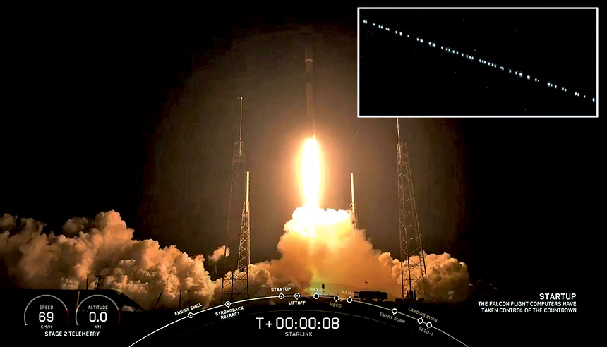 - Espace. Verra-t-on bientôt plus de satellites que d’étoiles dans le ciel ? C’est ce que craignent des astronomes après les derniers lancements de Space X.Si le ciel est dégagé, vous verrez peut-être défiler dans le ciel une chaîne de 60 points brillants, les premiers satellites de la constellation Starlink mise en orbite jeudi dernier par SpaceX, la société d’Elon Musk. C’est justement le fait qu’ils soient aussi visibles, et que leIl vous reste 89% de l'article à découvrir.Cet article est réservé aux abonnés.