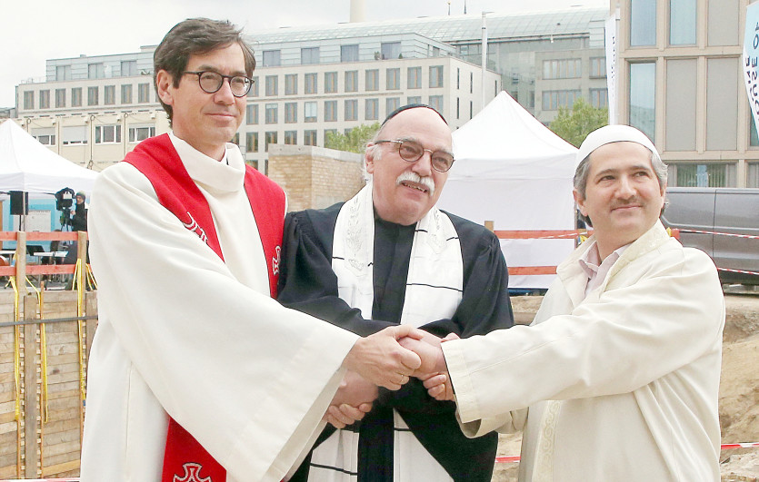 - Un pasteur, un imam et un rabbin ont posé jeudi à Berlin la première pierre d'un lieu de culte commun, un projet présenté comme unique au monde.Dix ans après la conception du projet, les travaux de construction de ce vaste édifice, situé sur l'île aux Musées dans le centre de Berlin, doivent durer quatre ans. Leur lancement prévu l'an dernier avait dû être reporté en raison de la pandémie. L'imam, le pasteur et le rabbin de laIl vous reste 91% de l'article à découvrir.Cet article est réservé aux abonnés.