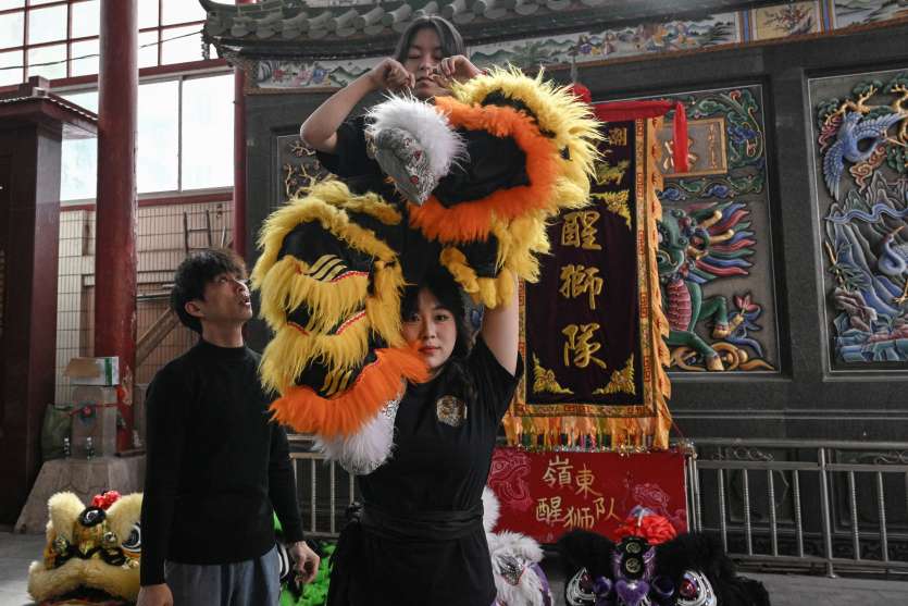 - AFP / Par Ludovic EHRET | Crée le 02.02.2025 à 11h00 | Mis à jour le 02.02.2025 à 11h00ImprimerDes danseuses s'entraînent à la danse du lion dans un temple à Shantou, le 22 janvier. Lin Xinmeng soulève son coéquipier dans les airs. Un symbole dans une Chine qui lutte depuis des siècles face aux normes patriarcales. AFP / JADE GAOEn T-Shirt noir, Lin Xinmeng, une jeune femme de 18 ans, soulève dans les airs un coéquipier masculin : la danse du lion s'ouvre aux filles en Chine, une révolution pour cette performance traditionnellement dominée par les hommes.