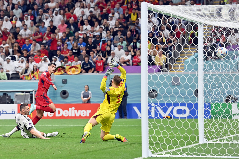 Alvaro Morata, souvent critiqué, a une nouvelle fois été décisif en ouvrant la marque contre l'Allemagne. Photo AFPMais ce but a donné aux Allemands un surcroît de rage et d’énergie. Et la Nationalmannschaft a dominé la fin de match, d’abord avec une première tentative de Niclas Füllkrug (73e), suivie quelques secondes plus tard d’un arrêt réflexe du gardien Unai Simon sur un tir de Jamal Musiala à bout portant. Et c’est encore Niclas Füllkrug, servi une nouvelle fois par Musiala, qui a marqué le but de l’espoir d’un tir tendu de près, un geste de véritable buteur, à la 83e minute.