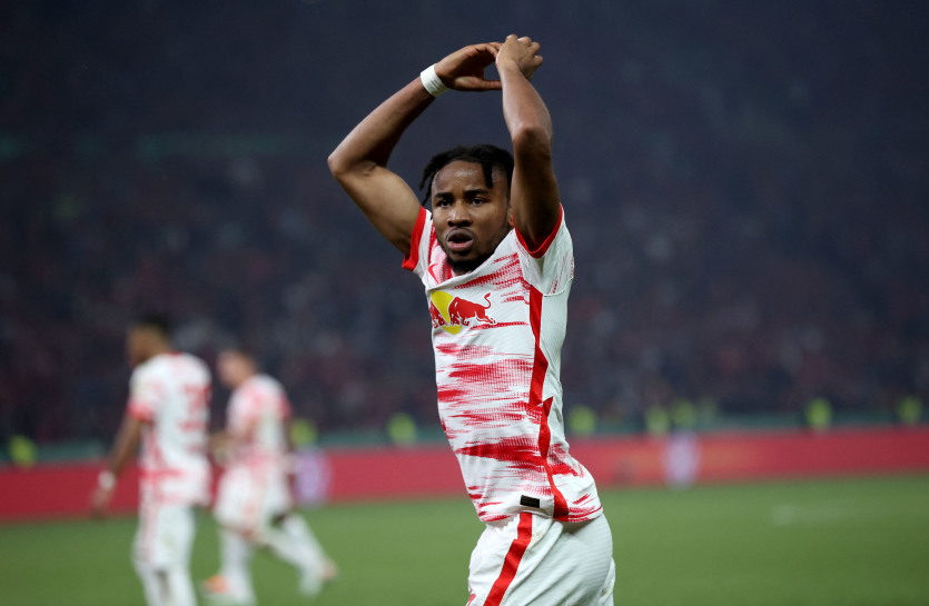 - FootballÉlu meilleur joueur du championnat allemand, l'attaquant français (24 ans) Christopher Nkunku (photo) a marqué (76e) hier à Berlin en finale de la Coupe d'Allemagne, permettant à Leipzig d'égaliser contre Fribourg (1-1). Le match a finalement été remporté par Leipzig, aux tirs au but (4-2Il vous reste 5% de l'article à découvrir.Cet article est réservé aux abonnés.