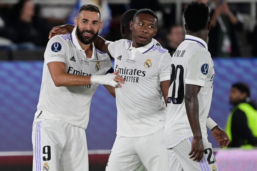 - FootballGrâce à un but du défenseur autrichien David Alaba (au centre) à la 37e minute, puis à un autre de l'attaquant français Karim Benzema (à gauche) à la 65e, le Real Madrid a battu hier le club allemand de l'Eintracht Francfort en Supercoupe d'Europe. "Ça n'a pas été un match facile, ils éIl vous reste 37% de l'article à découvrir.Cet article est réservé aux abonnés.