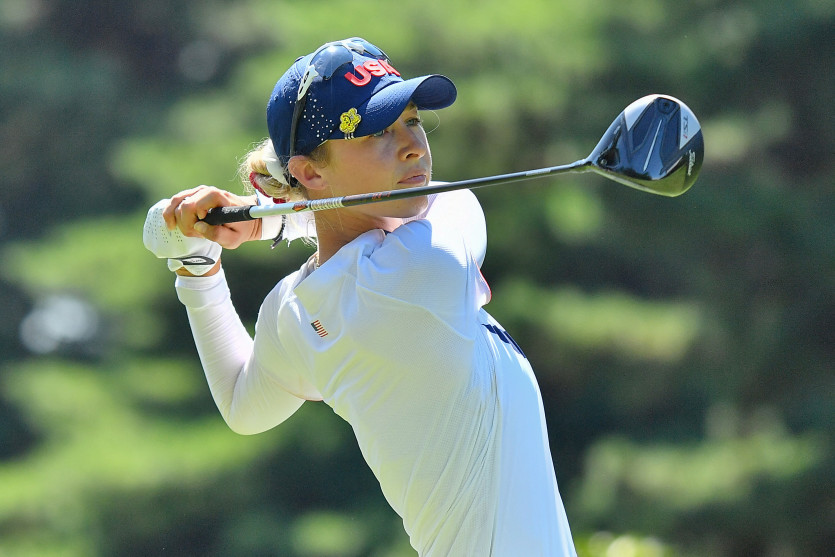 - L'Américaine Nelly Korda (23 ans), fille de l'ancien joueur de tennis tchèque Petr Korda, a pris les commandes du tournoi féminin, grâce à une carte de 62 jeudi, soit neuf sous le par, sur le parcours du Country Club de Kasumigaseki. Korda (photo) compte quatre longueurs d'avance, avant les deux derniers tours, sur un trio formé par l'Indienne Aditi Ashok et par les Danoises Nana Koerstz Madsen et Emily Kristine Pedersen. Perrine Delacour (27 ans) a reculé hier à la 27e place, à onze coups de Nelly Korda. L'autre joueuse française, Céline Boutier (27 ans), est elle remontée au 30e rang, à douze coups de la tête. La suite aujourd'hui.Il vous reste 99% de l'article à découvrir.Cet article est réservé aux abonnés.