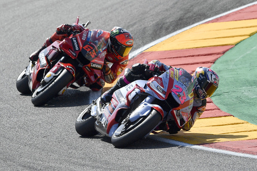 - Francesco Bagnaia. Le Turinois réalise tout de même une belle opération et, avec 201 points au compteur, ne compte désormais plus que dix points de retard sur Fabio Quartararo (211 points).Enea Bastianini sourit, Fabio Quartararo pleure. Si l'Italien a remporté lundi le Grand Prix d'Aragon, devant son compatriote Francesco Bagnaia, le Français, leader au général, a lui perdu gros. Enea Bastianini et Francesco Bagnaia ont livré jusqu'au bout une belle bataille pour la premièreIl vous reste 74% de l'article à découvrir.Cet article est réservé aux abonnés.