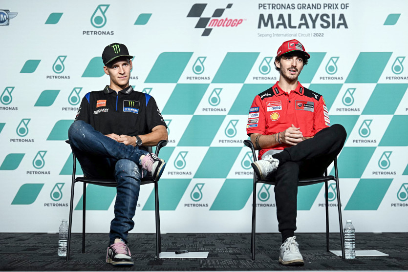 - Avant-dernier virage de la saison et première balle de match pour Francesco Bagnaia : l'Italien de Ducati, leader au championnat, a une première chance de sacre en Malaisie, avec dans le viseur Fabio Quartararo, décidé à conserver son titre.Placide à l'aube du rendez-vous le plus important de sa carrière, "Pecco" Bagnaia l'assure : "Je ne veux pas penser au championnat, je veux juste me concentrer sur l'objectif principal qui est de faire de bonnes courses et nous verrons ce qui se passera". Ses chances de premier titre mondial sontIl vous reste 92% de l'article à découvrir.Cet article est réservé aux abonnés.