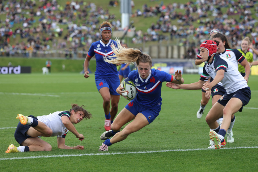 - La France, victorieuse de l'Italie (39-3) grâce notamment à un triplé de son ailière Joanna Grisez, sera opposée en demi-finale de la Coupe du monde féminine, samedi prochain à Auckland, à la Nouvelle-Zélande, qui s'est de son côté imposée face au pays de Galles (55-3).Les Bleues, dont l'objectif est de faire mieux que leur médaille de bronze obtenue lors du Mondial-2017, défieront donc les championnes du monde en titre, chez elles, dans leur temple de l'Eden Park, théâtre des exploits des All Blacks. Les coéquipières de Gaëlle Hermet, grâce à une deuxièIl vous reste 90% de l'article à découvrir.Cet article est réservé aux abonnés.