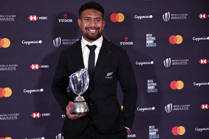 - AFP | Crée le 30.10.2023 à 15h41 | Mis à jour le 30.10.2023 à 16h41ImprimerLe numéro huit néo-zélandais Ardie Savea pose avec son trophée après avoir été nommé meilleur joueur du monde de l’année. Photo d'Anne-Christine POUJOULAT / AFPLe Néo-Zélandais Ardie Savea a été désigné joueur mondial de l’année 2023 lors de la cérémonie des World Rugby Awards, organisée lundi à Paris au lendemain de la finale de la Coupe du monde remportée par l’Afrique du Sud contre les All Blacks (12-11). La France est la nation la mieux représentée dans l’équipe-type de l’année 2023.