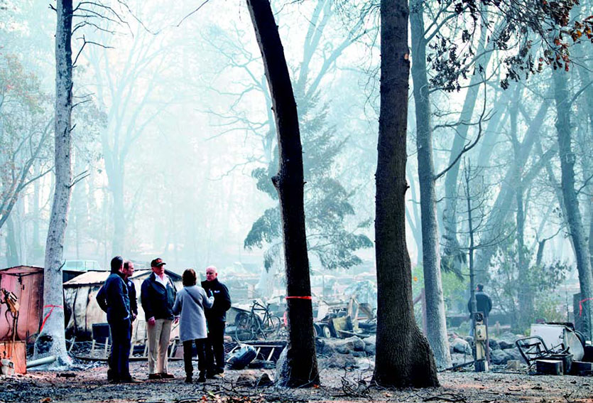 - ÉTATS-UNIS. Un spectacle de désolation attendait samedi Donald Trump à Paradise, petite ville presque totalement rasée par l’incendie le plus meurtrier de l’histoire de la Californie.Le visage grave sous sa casquette camouflage USA, le président américain, qui ne portait pas de masque malgré l’épaisse fumée qui enveloppe toujours la région, a constaté l’ampleur des dégâts aux côtés de la maire de Paradise, Jody Jones. Il vous reste 91% de l'article à découvrir.Cet article est réservé aux abonnés.