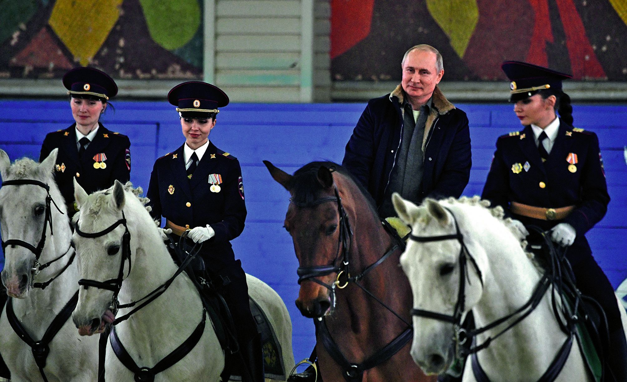 - Le président russe Vladimir Poutine est apparu, jeudi,à cheval entouré de femmes officiers de la police, à la veille de la Journée internationale des droits des femmes, vendredi, selon les images diffusées par les médias d’Etat. Vêtu d’un jean et d’une veste à col de fourrure,Il vous reste 76% de l'article à découvrir.Cet article est réservé aux abonnés.