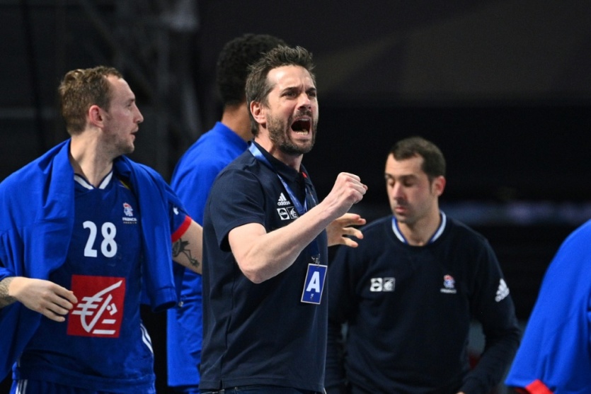 L'entraîneur de l'équipe de France, Guillaume Gille, lors du quart de finale du Mondial de handball contre la Hongrie, le 27 janvier 2021 dans la Ville du 6 Octobre, un faubourg près du Caire Anne-Christine POUJOULAT [POOL/AFP]