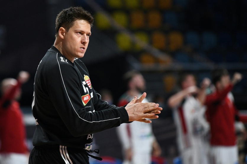 Le gardien hongrois Roland Mikler, lors du quart de finale du Mondial de handball contre la France, le 27 janvier 2021 dans la Ville du 6 Octobre, un faubourg près du Caire Anne-Christine POUJOULAT [POOL/AFP]