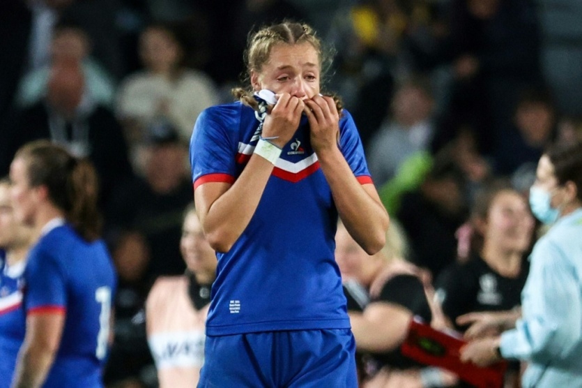 - | Crée le 05.11.2022 à 11h26 | Mis à jour le 05.11.2022 à 21h26ImprimerEmilie Boulard en larmes après la défaite du XV de France contre la Nouvelle-Zélande en demi-finale du Mondial le 5 novembnre 2022 à Auckland Marty MELVILLE [AFP]Le XV de France féminin, en quête d'une première finale en Coupe du monde, est passé tout près de l'exploit samedi à l'Eden Park d'Auckland, s'inclinant sur le fil face à la Nouvelle-Zélande (25-24), après une pénalité ratée par Caroline Drouin à la dernière minute.