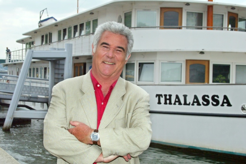 Georges Pernoud devant le bateau de l'émission de France3 Thalassa, le 16 juin 2004, quai de Javel à Paris PIERRE VERDY [AFP/Archives]MERCI DE VOUS IDENTIFIER