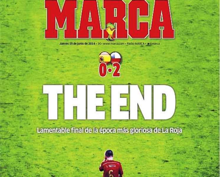 - L’élimination de la Roja au 1er tour de la Coupe du monde est évidemment à la Une de toute la presse espagnole ce jeudi matin. Si la presse généraliste parle évidemment de Felipe VI de Bourbon, devenu nouveau roi d’Espagne à minuit, impossible de passer à côté de la déceptionIl vous reste 77% de l'article à découvrir.Cet article est réservé aux abonnés.