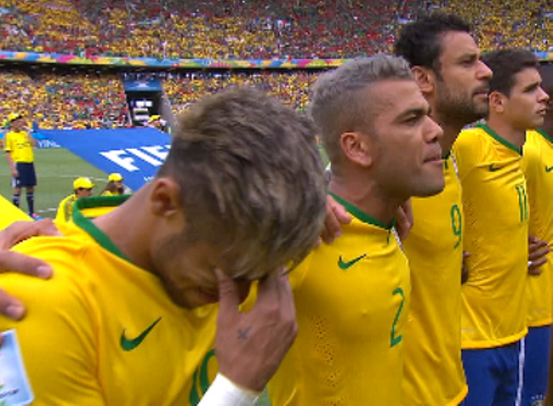 - A l'image de toute la Seleçao, Neymar est apparu très ému durant l'hymne du Brésil, repris en choeur par les 50 000 spectateurs de Fortaleza. L'attaquant du Barça a même fondu en larmes quelques minutes avant d'affronter le MexiqueIl vous reste 5% de l'article à découvrir.Cet article est réservé aux abonnés.