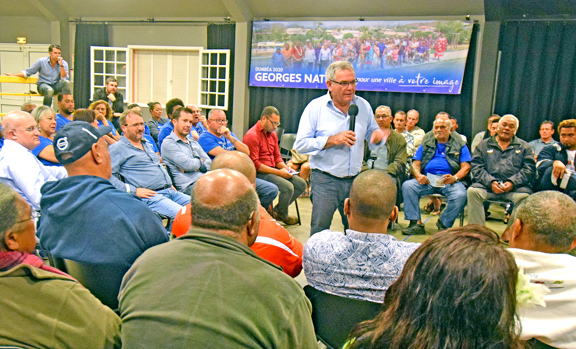 - Dumbéa. Maire sortant briguant un troisième mandat, Georges Naturel a tenu une dernière réunion de campagne, mardi soir, au Studio 56, sous forme d’échange-débat avec les associations de la ville.« On voulait terminer cette campagne électorale avec vous. On a besoin de vous pour la suite car c’est avec le monde associatif que l’on construit une ville. » Treizième de liste, habitué des institutions, Yoann Lecourieux, membre du gouvernement en charge du budget et des finances, a animIl vous reste 92% de l'article à découvrir.Cet article est réservé aux abonnés.