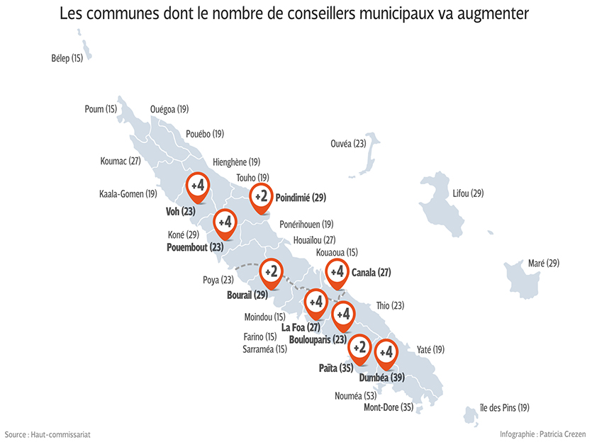 - POLITIQUE. Il y aura presque 800 conseillers municipaux en Calédonie au soir du 22 mars. Soit 30 de plus que ceux établis sur la base du recensement de 2009. Celui de 2014 a été effectué quelques mois après les élections de la même année, et n’avait pas été pris en compte.Il y aura en Nouvelle-Calédonie 30 conseillers municipaux de plus au soir du dimanche 22 mars 2020. Cette augmentation est liée à la progression démographique de la population, photographiée lors du recensement de 2019, qui a été particulièrement significative dans neuf communes duIl vous reste 91% de l'article à découvrir.Cet article est réservé aux abonnés.