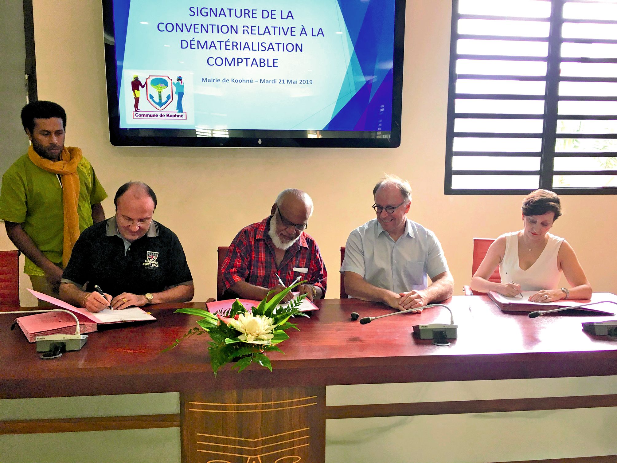 - NORD. La commune de Koné a signé mardi une convention entre le maire, le président de la chambre territoriale des comptes, le directeur des finances publiques de la Nouvelle-Calédonie et la trésorière de la province Nord. Cette signature concrétise la dématérialisation de la chaîneIl vous reste 83% de l'article à découvrir.Cet article est réservé aux abonnés.