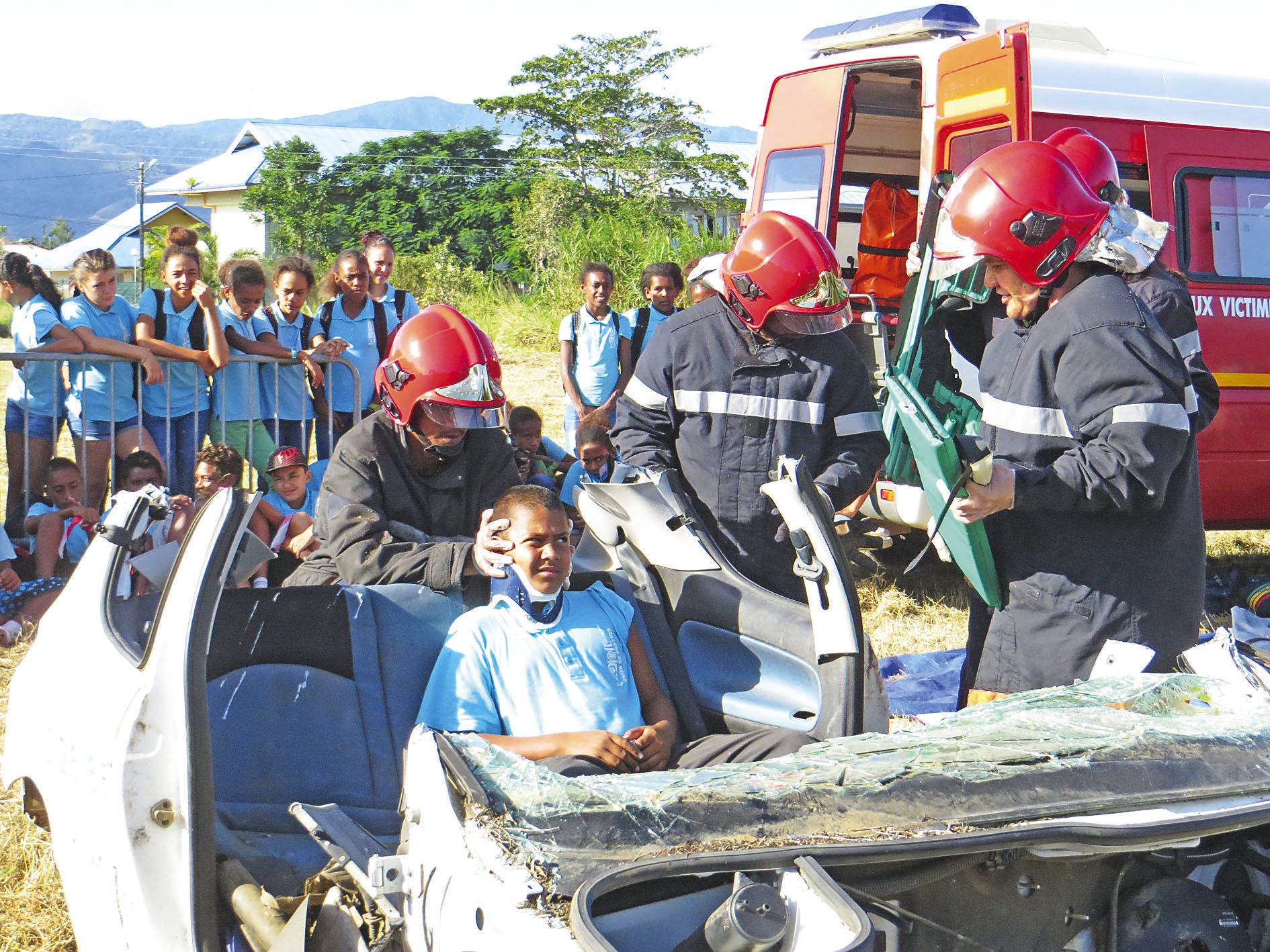 - Koné. Tous les élèves de cinquième ont bénéficié jeudi d’un après-midi de sensibilisation à la sécurité routière. Différents ateliers de mise en situation leur ont permis de mieux comprendre les trois principaux facteurs à l’origine des accidents de la route en Nouvelle-Calédonie : alcool/cannabis, non-port de la ceinture de sécurité et vitesse excessive.1 > « Vous devez tout faire pour ne pas en arriver là ! », a lancé le capitaine Silvio Loquet aux collégiens. Les sapeurs-pompiers de Koné ont dû découper les portes et le toit de cette voiture accidentée pour porter secours au « blessé » du jour. 2 > Cynthia Ligeard (à droite),Il vous reste 82% de l'article à découvrir.Cet article est réservé aux abonnés.