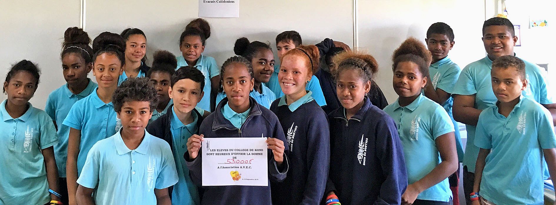 - KONÉ. Les 5eB, après un vote, se sont mobilisés pour l’association Avec (Aide volontaire aux évacués calédoniens) et ont remis dernièrement un chèque de 53 000 francs à Mme Hellouin, une bénévole. Ces élèves du collège de Koné ont, comme ceux des trois autres classes de 5e, travaillIl vous reste 67% de l'article à découvrir.Cet article est réservé aux abonnés.