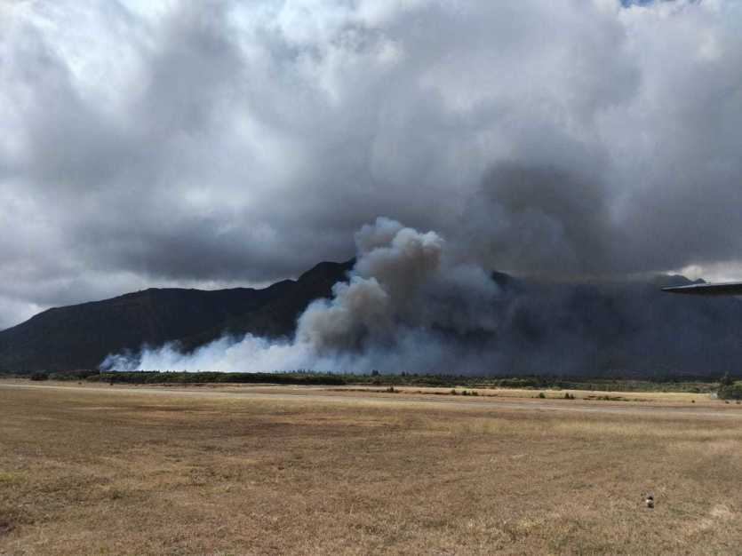 En marge de la visite ministérielle, un incendie s’est déclaré ce jeudi, à quelques encablures du RSMA de Koné, derrière l’aérodrome. Photo Anthony TejeroMERCI DE VOUS IDENTIFIER