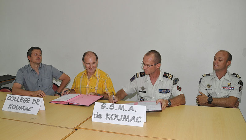 - KoumacVendredi dernier, le lieutenant-colonel Hotier, représentant le GSMA-NC, et Patrick Gillmann, principal du collège de Koumac, ont signé une convention de jumelage prévoyant de nombreuses actions communes pour les jeunes.Ce jumelage est né d’une idée évoquée par le vice-rectorat, les FANC et l’association régionale de l’Institut des hautes études de la défense nationale, à l’occasion d’un stage de sensibilisation à la défense nationale, organisé en juin dernier à l’Il vous reste 88% de l'article à découvrir.Cet article est réservé aux abonnés.