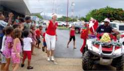 - Koumac. Dans les jardins de la mairieC'est en organisant une journée festive et pleine d'animations que la mairie de Koumac a décidé de célébrer Noël pour le bonheur des plus jeunes et de leurs parents, toute la journée de mercredi. Près de 400 enfants, scolarisés jusqu'en CM2, étaient inscrits.1. Tiré par un quadC’est escorté par Bertrand Pimé, policier municipal, que le père Noël est arrivé tracté par un quad. Il a distribué de nombreuses friandises sur son passage, qui a bien sûr provoqué un mouvement de foule. La mairie a voulu faire de cette célébration de Noël uneIl vous reste 78% de l'article à découvrir.Cet article est réservé aux abonnés.