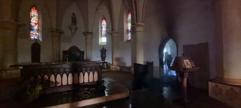 Le 14 août, vers 4 heures du matin, les pompiers sont alertés : l’église du Sacré-Cœur de Tyé est en flamme. Les dégâts sont considérables. L’autel, la sacristie et une chapelle attenante ont été entièrement ravagés par les flammes. La nef est toutefois sauvée et la structure de l’église ne semble pas avoir été atteinte.