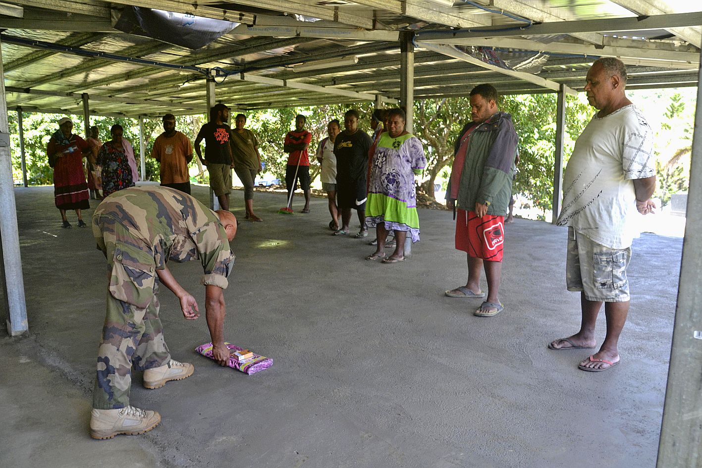 - PONÉRIHOUEN. Une section de la première compagnie motorisée du Régiment d’infanterie de marine du Pacifique Nouvelle-Calédonie, composée de militaires affectés sur le territoire pour une mission de courte durée, a passé quelques jours en immersion à la tribu de Grochain.Entouré des capitaines Billiez (à gauche) et Lacaze, Edouard Menrempon, membre des autorités coutumières, s’est excusé de l’absence du petit chef et des présidents du conseil et a remercié les militaires pour les travaux accomplis. « Cela nous aide beaucoup » a-t-il concédé. AuIl vous reste 66% de l'article à découvrir.Cet article est réservé aux abonnés.