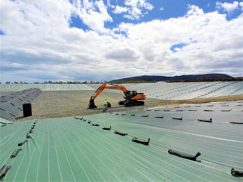 "Nous avons choisi la plaine des Gaïacs car le sol y est très argileux, ce qui crée une première étanchéité passive. C’est un sol dans lequel l’eau ne traverse pas ou très peu, explique le directeur du Sivom. Ces argiles ont été remises en forme pour faire une première barrière passive de terre naturellement imperméable, soit une couche épaisse de 1,5 mètre. Ensuite, il y a une deuxième barrière dite active, qui est une géomembrane. Puis, nous avons disposé une protection contre les UV pour ne pas attaquer cette géomembrane."
