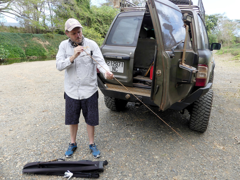 Micky en est persuadé : il manque quelque chose, dans le gilet aux multiples poches qu’il vient d’enfiler. "Je le sens au poids." Une boîte de mouches a bel et bien disparu. Le pêcheur remet rapidement la main sur ses leurres, abandonnés quelques minutes plus tôt sur le pare-chocs du pick-up.