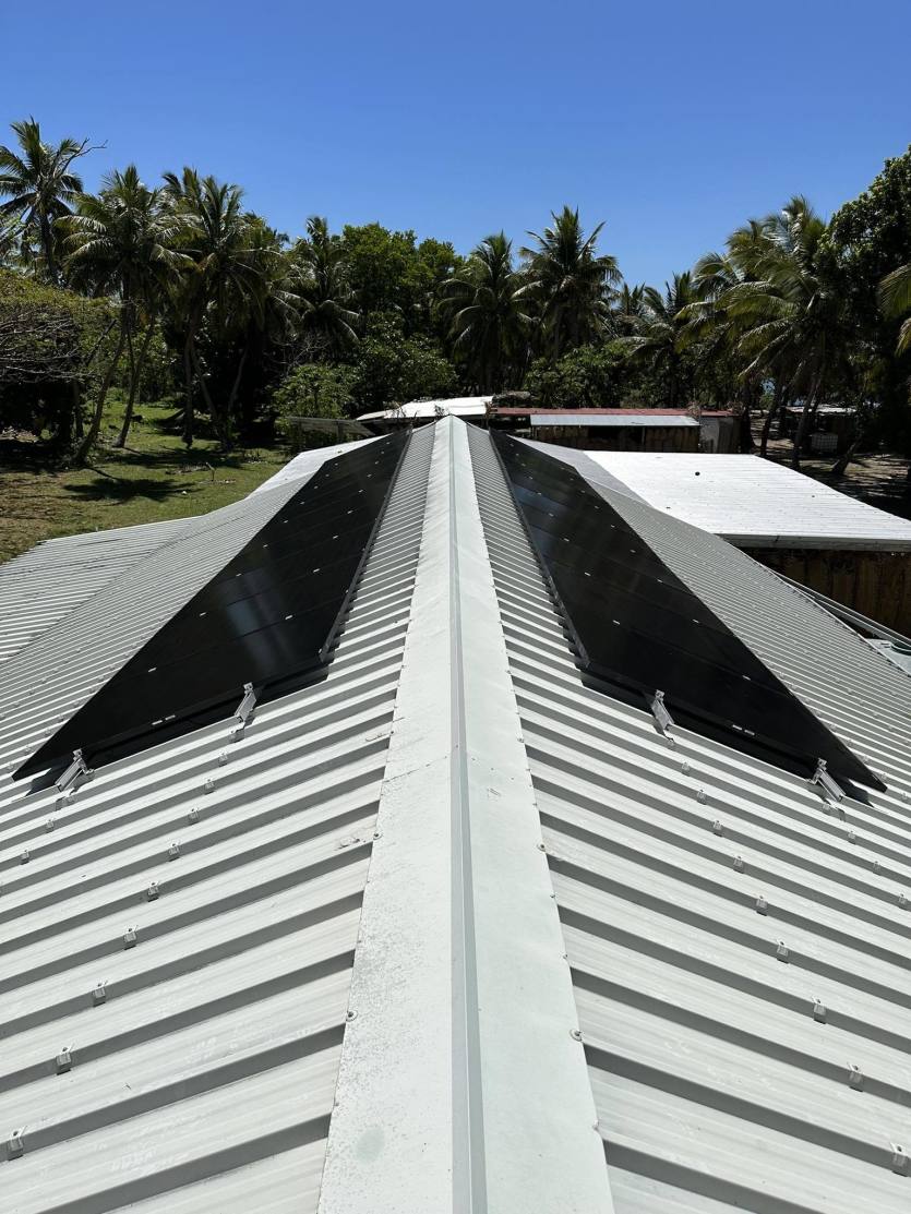 Pour alimenter le dessalinisateur, vingt panneaux photovoltaïques ont été posés sur le toit de la maison commune. Photo EnercalMERCI DE VOUS IDENTIFIER