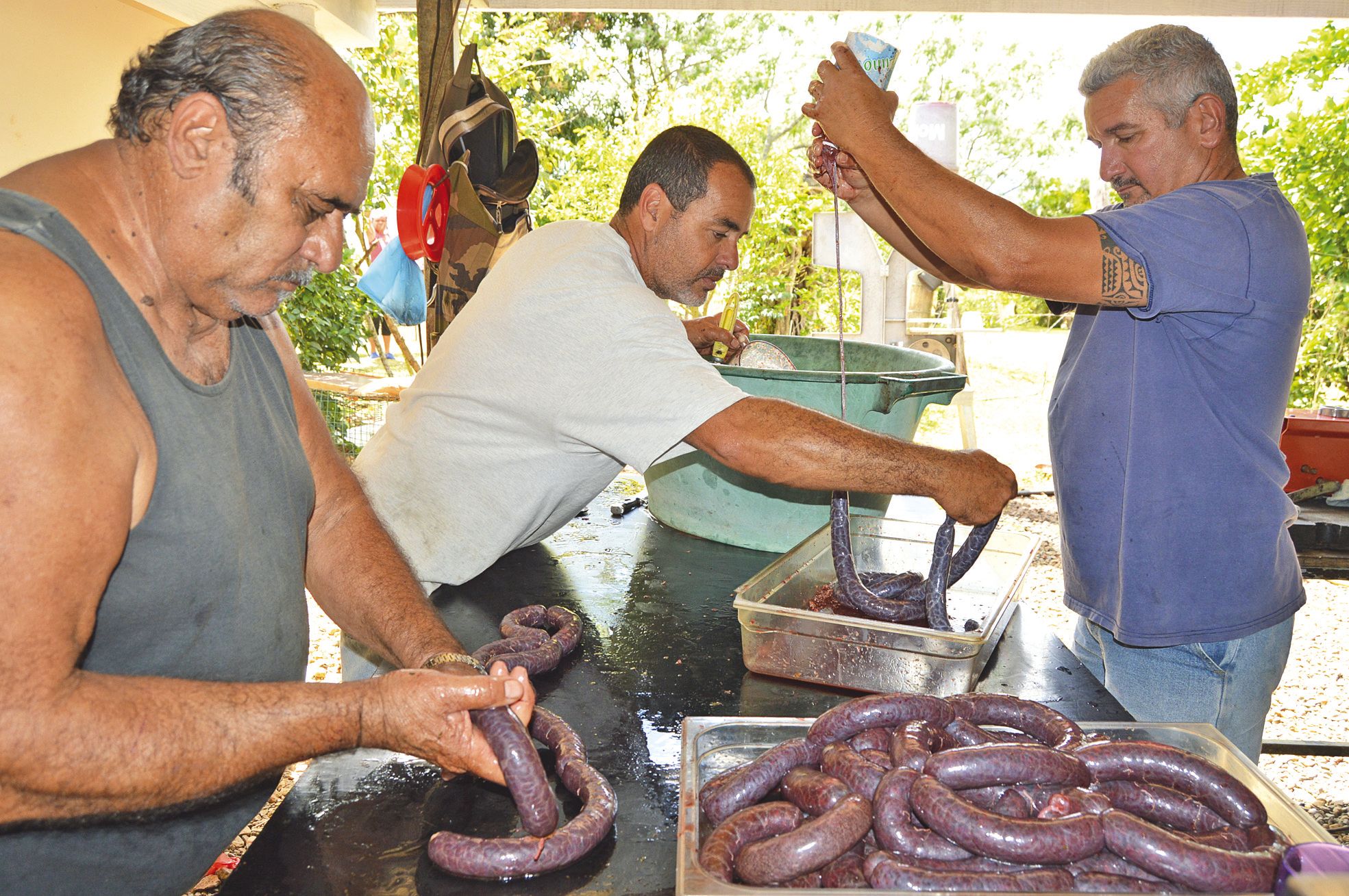 - Poya. Toute la semaine, les bénévoles de l’Association de Poya Sud ont transformé les quatorze cochons tués lundi en vue de la troisième Fête de la cochonnaille, ce 15 octobre. Hier, ils ont préparé 30 kg de boudin noir. Une activité familiale et collective.Le boudin, c’est sacré, ou presque, pour les familles calédoniennes de l’Association de Poya Sud. Une recette est suivie et préparée chaque année : celle des « cousins », Jacques Gossoin et Christophe Manauté. Gamins, ils regardaient leur arrière-grand-mère, puis leur grand-mère,Il vous reste 92% de l'article à découvrir.Cet article est réservé aux abonnés.