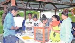- Textes et photos de notre correspondant Christian Oghino | Crée le 08.06.2018 à 04h25 | Mis à jour le 08.06.2018 à 05h53ImprimerLe bien-être et l’environnement ont animé la journée. L’association Hô-üt a apporté sa participation en proposant aux élèves un jeu ludique pour les sensibiliser aux feux de forêt. Josina, animatrice de l’association, a guidé les élèves dans ce jeu en preTouho. Créer un climat nouveau où chacun portera un regard différent sur l’autre. Tel était l'objectif de la journée de cohésion organisée mercredi au sein du lycée Augustin-Ty de Touho. « Il s’agit de faire travailler ensemble tout le personnel et tous les élèves à travers des activités diverses où chacun montre ses talents, autour d'activités et non pas de cours », a précisé Geneviève Ovinet, proviseur. Et visiblement, le principe a conquis tout le monde.