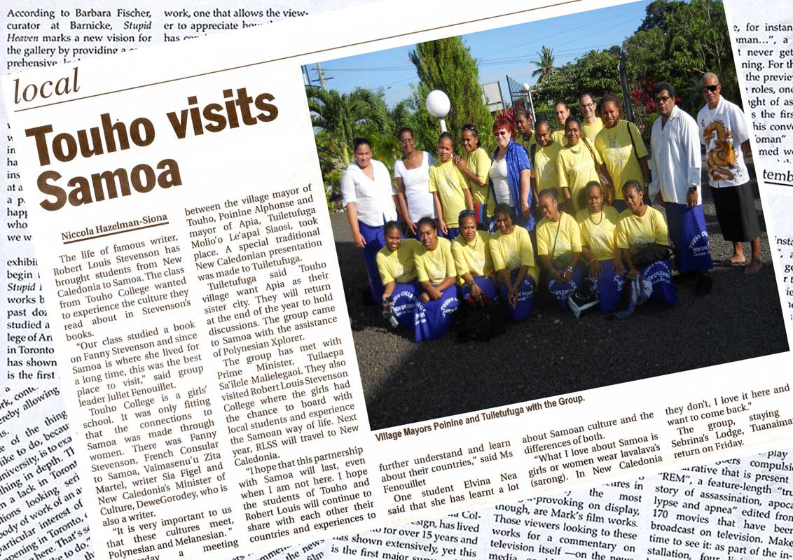 - Quatorze lycéennes d'Augustin-Ty reviennent d'un séjour aux îles Samoa, sur les traces de l'auteur écossais Robert Louis Stevenson. Elles ont rencontré de nombreuses personnalités et leur passage n'est pas passé inaperçu.Après avoir rêvé et travaillé ce projet pendant deux années, l’Association pour la jeunesse kanak et samoane (AJKS) est partie, pendant les dernières vacances, à la découverte des îles Samoa avec quatorze jeunes filles de terminale du lycée Augustin-Ty de Touho. Ce périple avaitIl vous reste 83% de l'article à découvrir.Cet article est réservé aux abonnés.