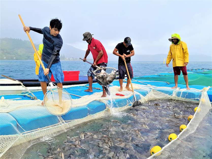 C’est une espèce omnivore qui a besoin de moins de farine de poisson que le pouatte pour son alimentation. Son aliment, qui peut être fabriqué localement, est moins coûteux et ce poisson, qui est adoré en Calédonie, se vend à un tarif plus élevé. On projette ainsi des modèles de production plutôt rentables avec des fermes à partir de 30 à 40 tonnes de poissons par an, ce qui est bien moindre que pour les pouattes.