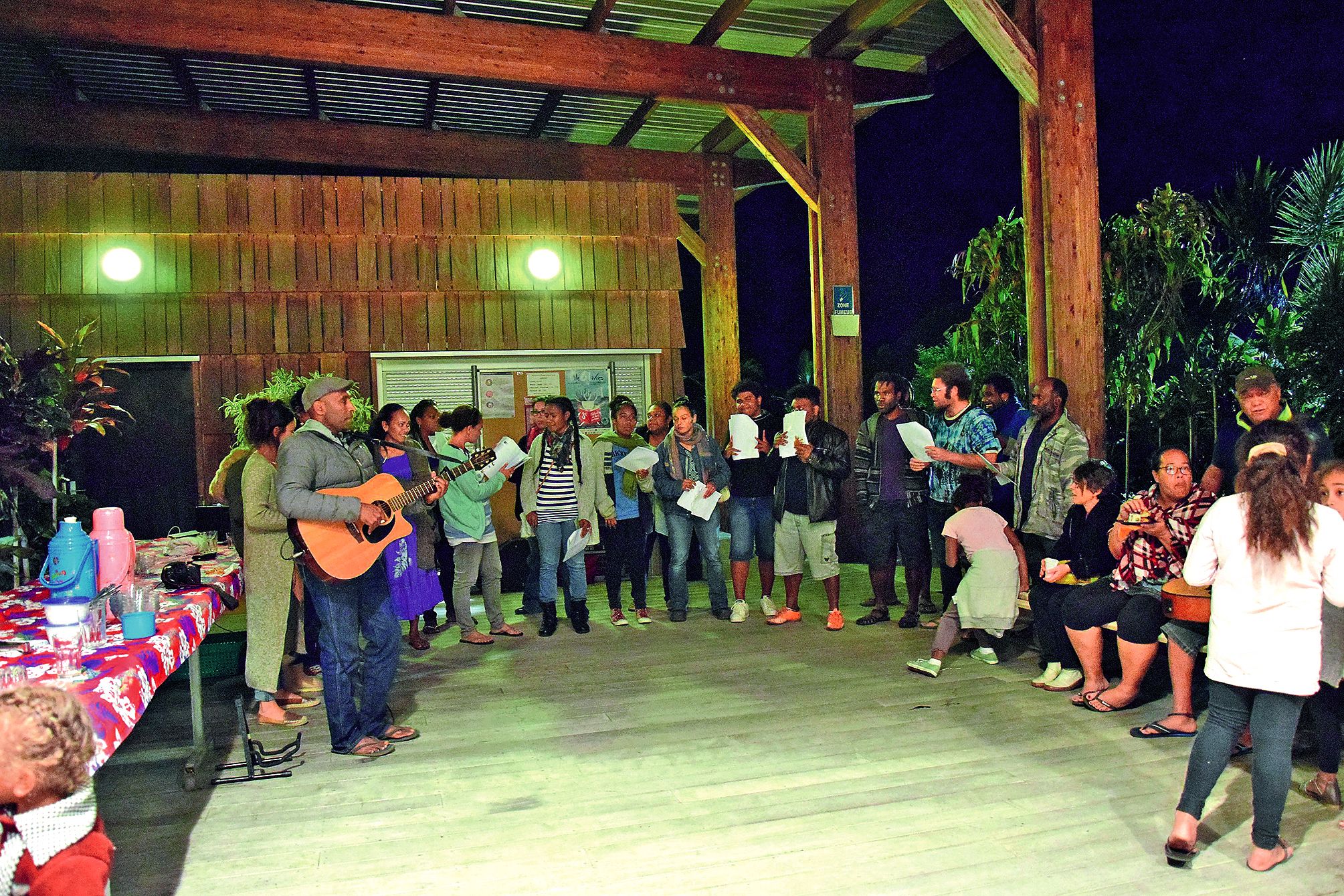 - VOH. Le centre culturel accueille depuis mardi soir deux événements : l’exposition La faim des totems de Nicolas Molé (entrée libre jusqu’au 8 octobre) et la 3e édition du festival L’Île Ô Livres (hier et aujourd’hui). C’est à 17 heures que le rendez-vous au public était fixé. Outre l’ouverture du festival, le centre proposait au public le vernissage de l’exposition et un concert de bienvenue aux artistes. Plus de 130 personnes étaient présentes.Après leur arrivée, les artistes ont été présentés au public et au personnel du centre culturel de Voh. La coutume faite, le public et le personnel se sont positionnés en cercle et les artistes, un à un, ont fait le tour de l’assistance, pour saluer et remercier de leur accueil lesIl vous reste 63% de l'article à découvrir.Cet article est réservé aux abonnés.
