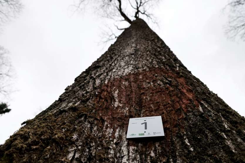 - | Crée le 06.03.2021 à 21h09 | Mis à jour le 06.03.2021 à 22h09ImprimerLe chêne n°1 sélectionné pour la reconstruction de la flèche de Notre-Dame détruite dans un incendie en avril 2019, le 5 mars 2021 dans la forêt de Bercé, à Jupilles, dans la Sarthe THOMAS COEX [AFP]Ils ont déjà vécu deux siècles, il leur faudra plusieurs années pour que leurs précieux bois puissent soutenir la future flèche de Notre-Dame de Paris: un traitement long et complexe attend les chênes majestueux de la forêt de Bercé (Sarthe)