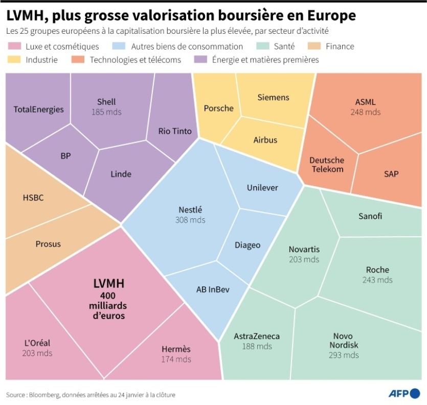 LVMH, plus grosse valorisation boursière en Europe Valentin RAKOVSKY, Sophie RAMIS [AFP]MERCI DE VOUS IDENTIFIER