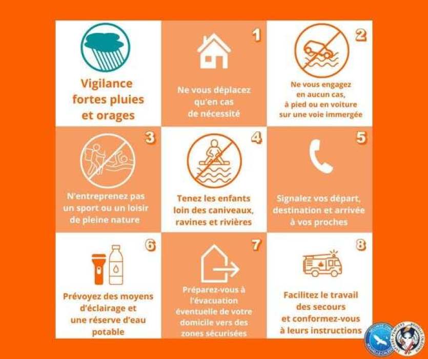 Le gouvernement rappelle les bons gestes à adopter en cas de fortes pluies et orages. Illustration Gouvernement Nouvelle-CalédonieMERCI DE VOUS IDENTIFIER