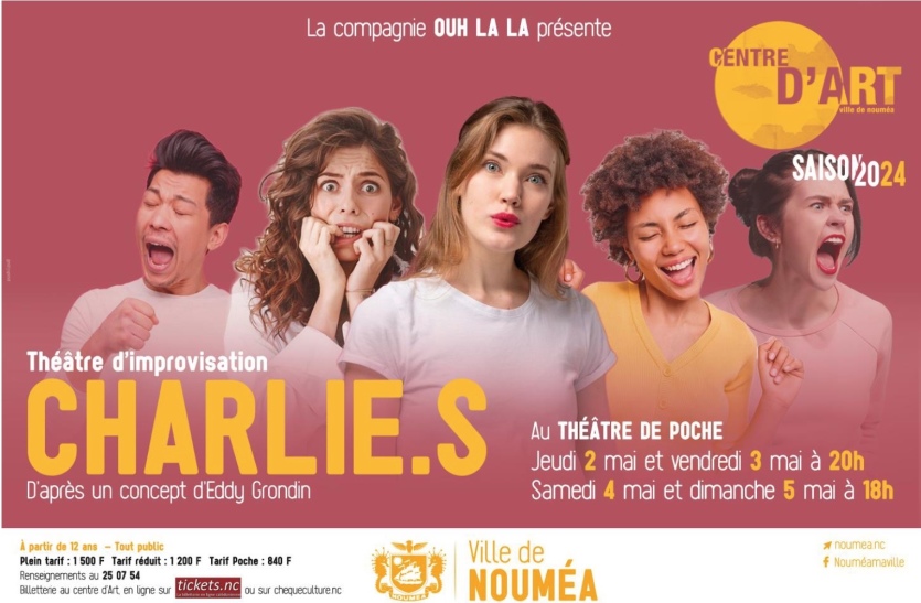 Spectacle d’improvisation Charlie. s par la compagnie Ouh la la la au Théâtre de Poche. Photo Ville de Nouméa/Ouh la la laLa compagnie Ouh la la la présente le spectacle d’improvisation Charlie.s. L’univers poignant de Charlie qui tente de se reconstruire après un traumatisme qui l’a fortement touché. Un concept de spectacle d’improvisation proposé par Eddy Grondin, improvisateur réunionnais, lors du Festival international d’improvisation théâtral de 2022. Une expérience théâtrale immersive où les frontières entre la fiction et la réalité sont fines. Chaque représentation est unique, et chaque moment est imprégné de spontanéité et d’authenticité. Un spectacle qui fait réfléchir, rire et pleurer, et qui vous laissera une sensation de connexion profonde avec les personnages et les thèmes universels qu’ils explorent. Jeudi 2 et vendredi 3 mai à 20 heures, samedi 4 et dimanche 5 mai, à 18 heures. À partir de 12 ans. Tarifs : de 840 F à 1 500 F. Billetterie au Centre d’Art du mercredi au vendredi de midi à 16h30, en ligne sur tickets.nc ou sur chequeculture.nc. Renseignements au 25 07 54