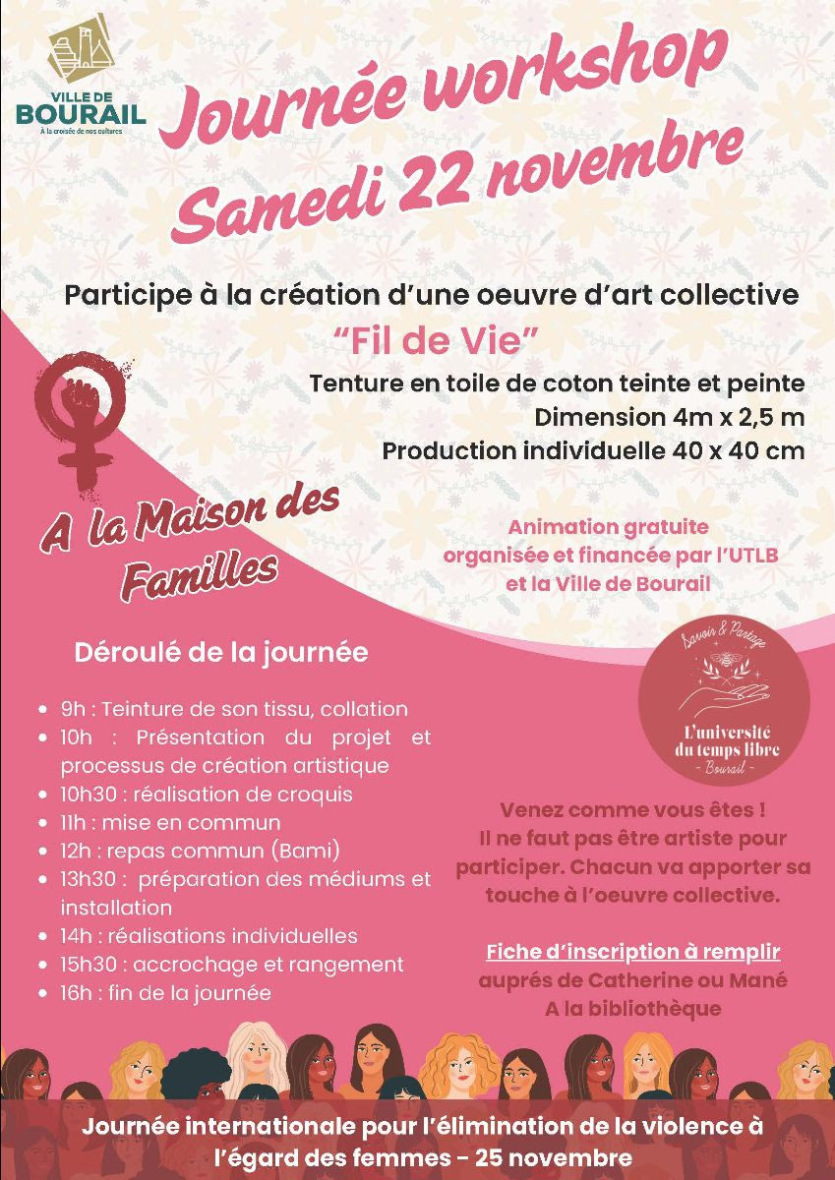 À l’occasion de la journée internationale de l’élimination des violences faites aux femmes, la mairie de Bourail propose aujourd’hui deux animations. À la maison des familles, un atelier autour de la création d’une œuvre d’art collective, en workshop, de 9 heures à 16 heures. Gratuit sur inscription auprès de Mané à la bibliothèque. Puis au cinéma Paul K.Dupré, à 18h30, projection et débat autour du film Dis-moi juste que tu m’aimes avec deux associations. Tarifs : 500 F sur place. À partir de 18 ans.